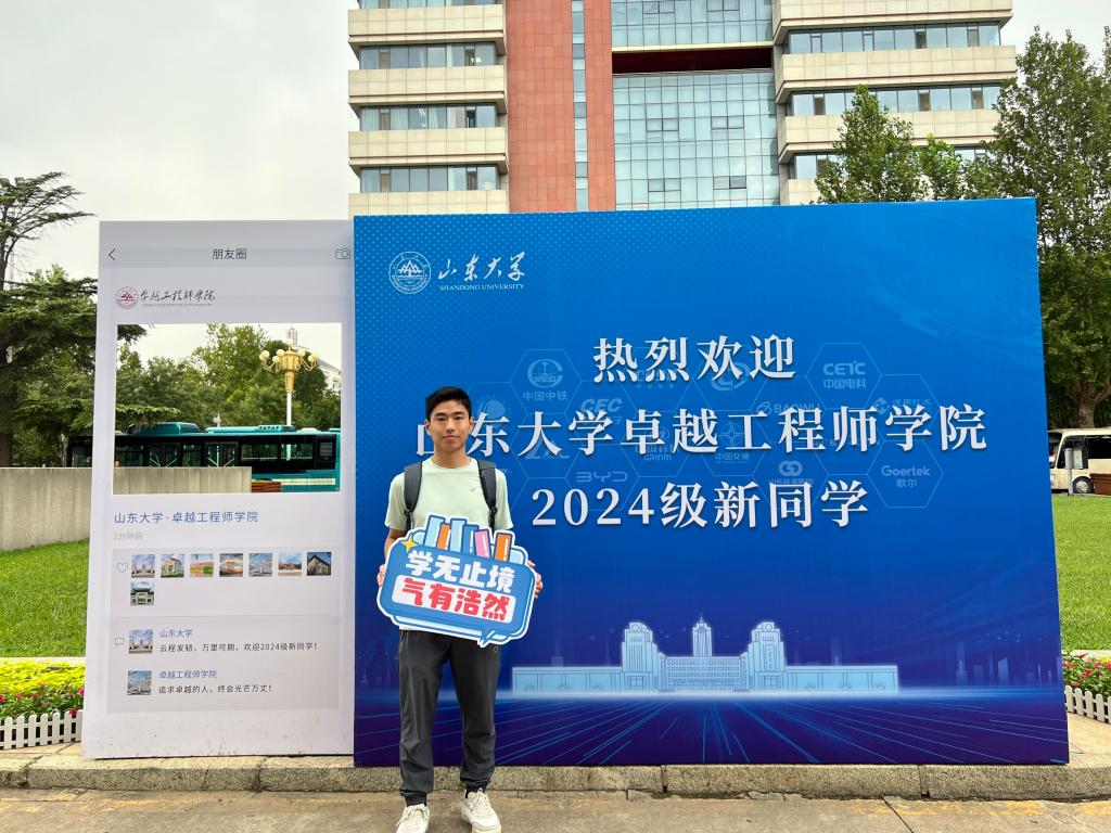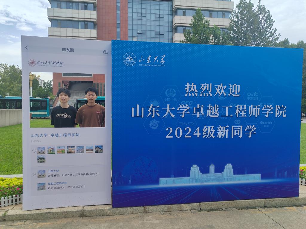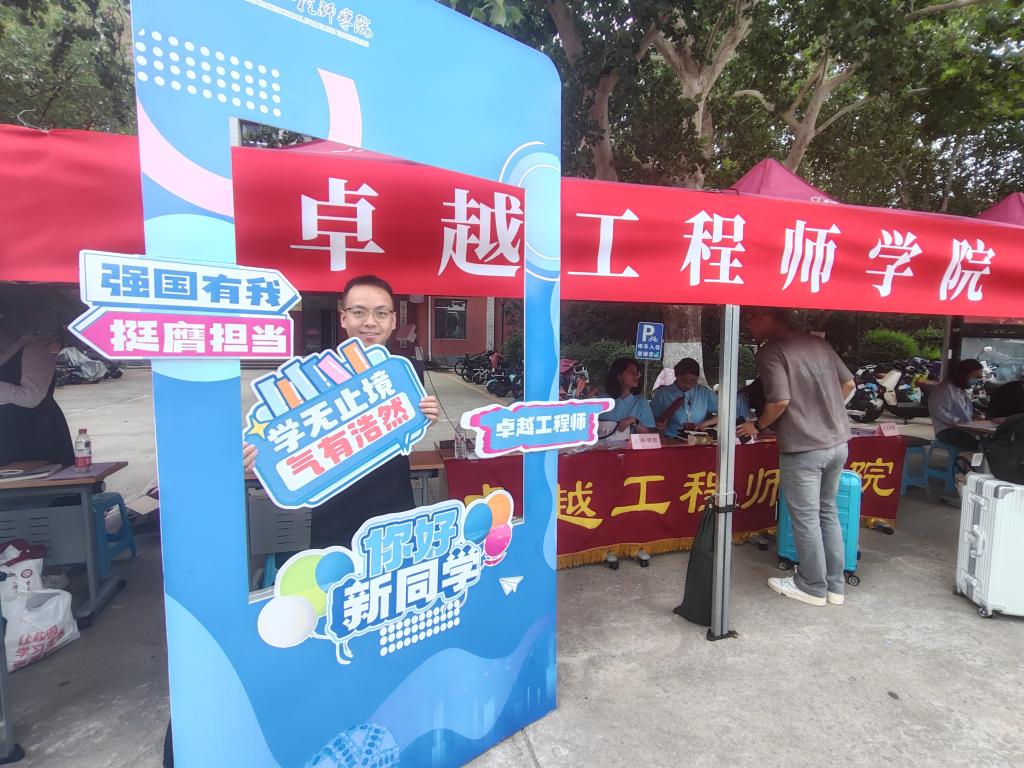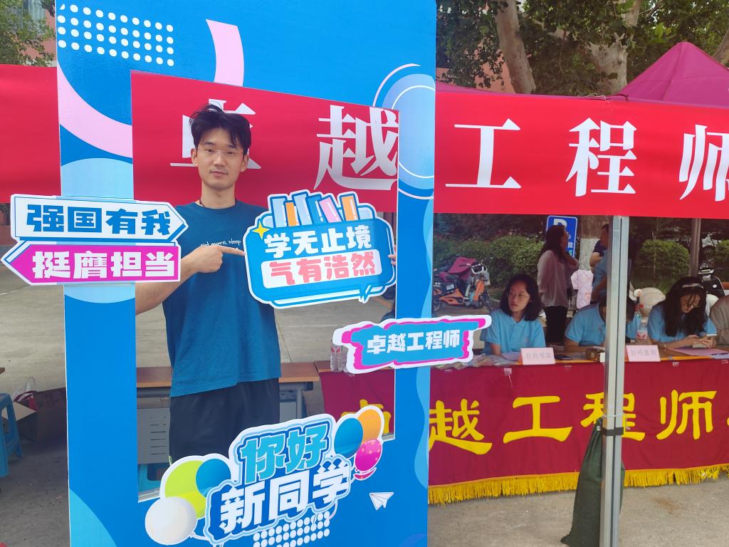 新生们纷纷在学院展板、打卡墙前拍照留念,“卓越工程师”“强国有我、挺膺担当”“心怀国之大者、澎湃青春力量”,手卡上的文字反映着同学们成为新时代卓越工程师的理想追求,洋溢的笑容彰显着大家对新生活的期盼和自信。
