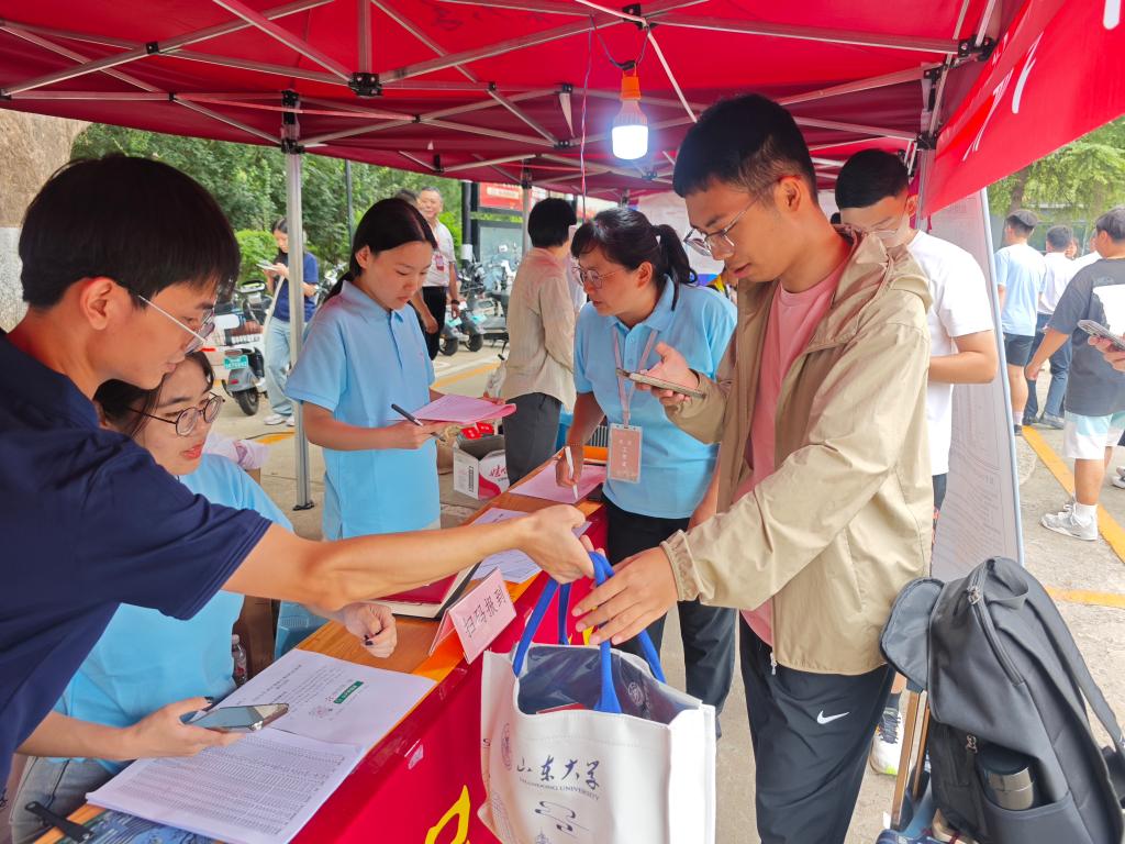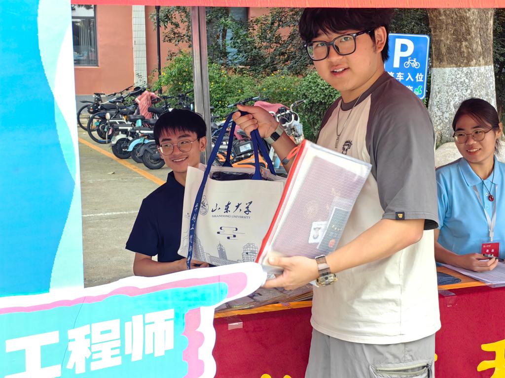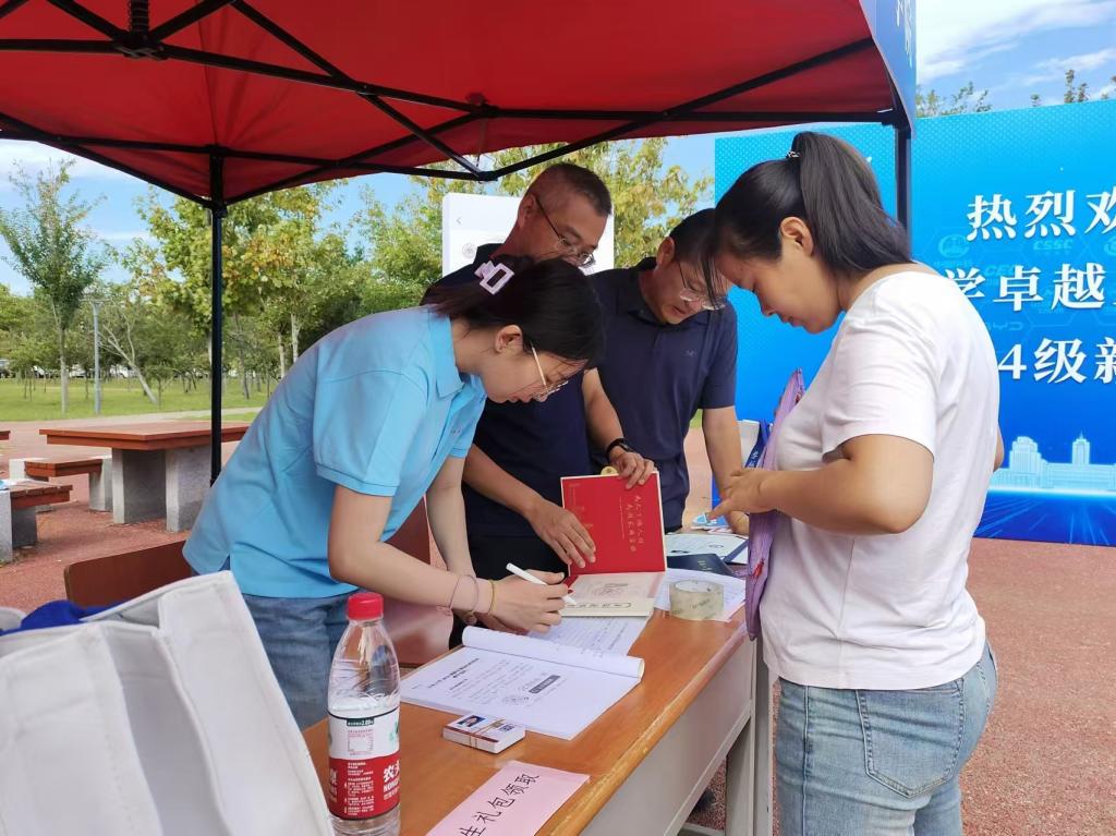 太阳集团副校长、卓越工程师学院院长吴臻来到千佛山校区报到点,关切询问报到工作筹备情况、报到进展,对学院的迎新工作表示肯定,还代表学校为正在办理报到手续的新生送上了“惊喜礼包”。
