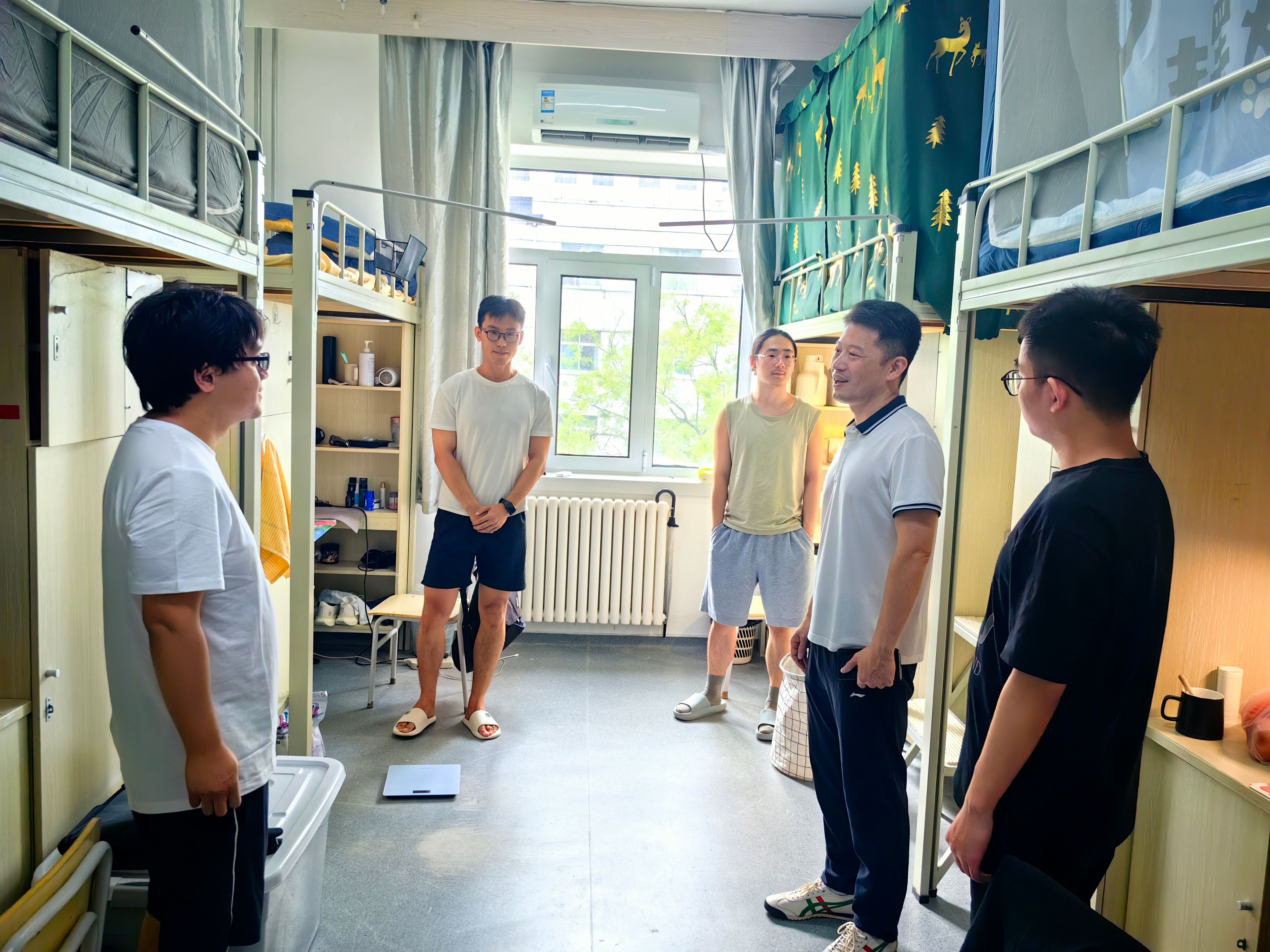 老师们来到学生宿舍,与留校学生亲切交谈,代表学院向大家致以节日的慰问,并为同学们送上了“爱心礼包”。在温馨热烈的氛围中,老师们详细询问了大家的学习生活状况和对未来科研的规划,耐心倾听同学们在新学期开学之初对学业、生活的种种困惑,并提供了针对性的建议与指导。交谈中,老师们教导同学们,要合理规划学习生活,认真学习专业知识,为将来入企实践打下坚实的基础。老师们鼓励同学们,要锚定真问题选择科研方向,致力于解决国家“卡脖子“难题,心怀“国之大者”,努力成为担当民族复兴大任的卓越工程师。老师们叮嘱同学们,中秋佳节是团圆的节日,要在学习科研之余给家人打个电话,平时也要与家人常联系。同学们对学院的关心慰问表示感谢,表示将合理规划自己的学习生活,以饱满的精神状态投入新的学习阶段,不辜负学院的期待。