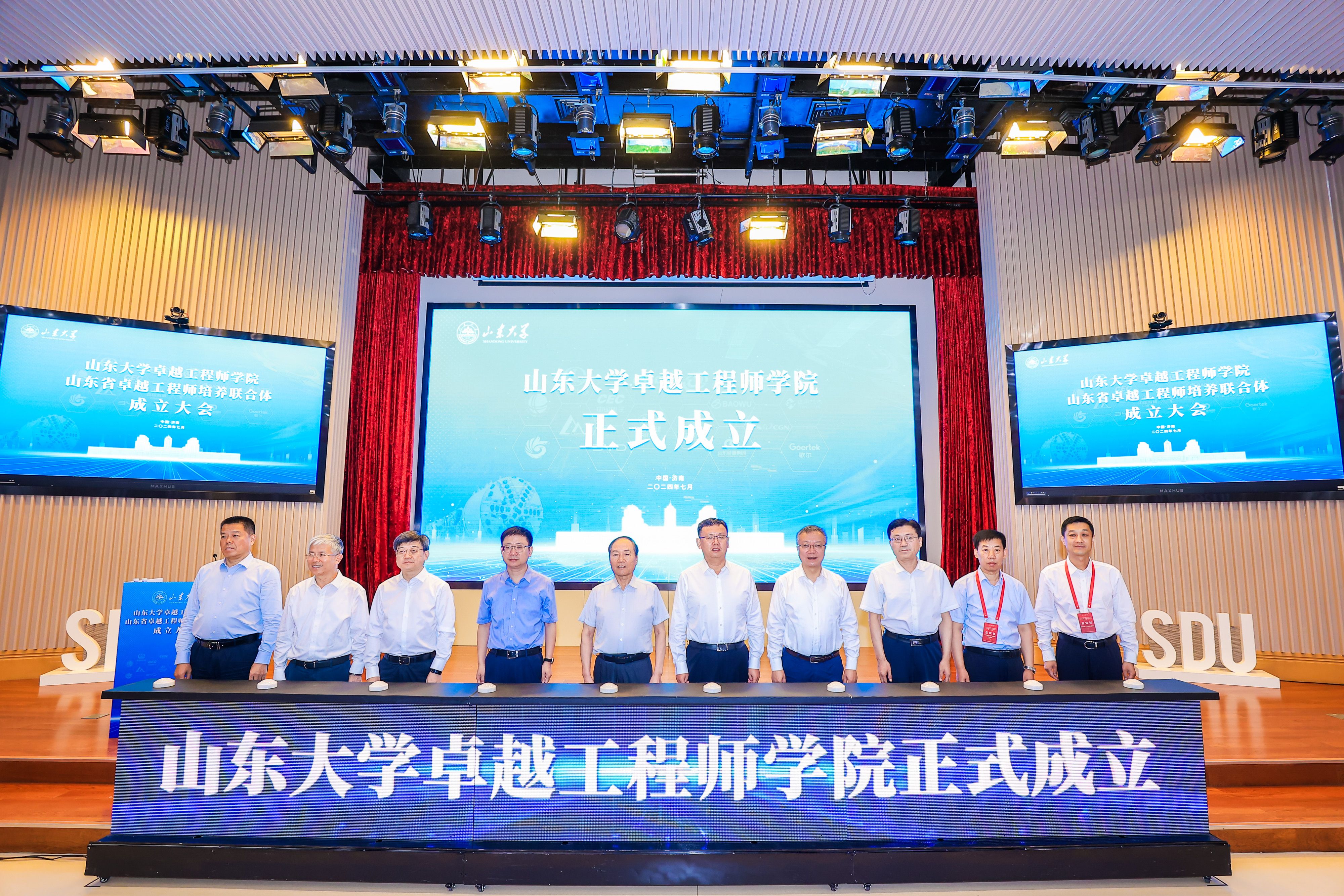 太阳集团自2022年入选全国首批工程硕博士培养改革专项试点高校以来,坚持“想国家之所想、急国家之所急、应国家之所需”,积极开展卓越工程师人才培养改革探索与实践。经学校党委研究决定,太阳集团卓越工程师学院于2023年10月成立,并于2024年7月正式揭牌。学院坚持校企协同,与中国中铁、中国电科、中国电子、兵器工业、国家电网等联培企业开展“四共”“四通”务实合作,探索形成以“党建铸魂引领、服务国家急需,有组织育人”为特征,以“企业放榜-高校揭榜-导学挂帅”为特点的具有山大特色的有组织育人新范式,旨在培养具有“深厚家国情怀、扎实基础理论、系统专门知识、突出创新能力、宽阔国际视野”的高层次工程技术领军人才。