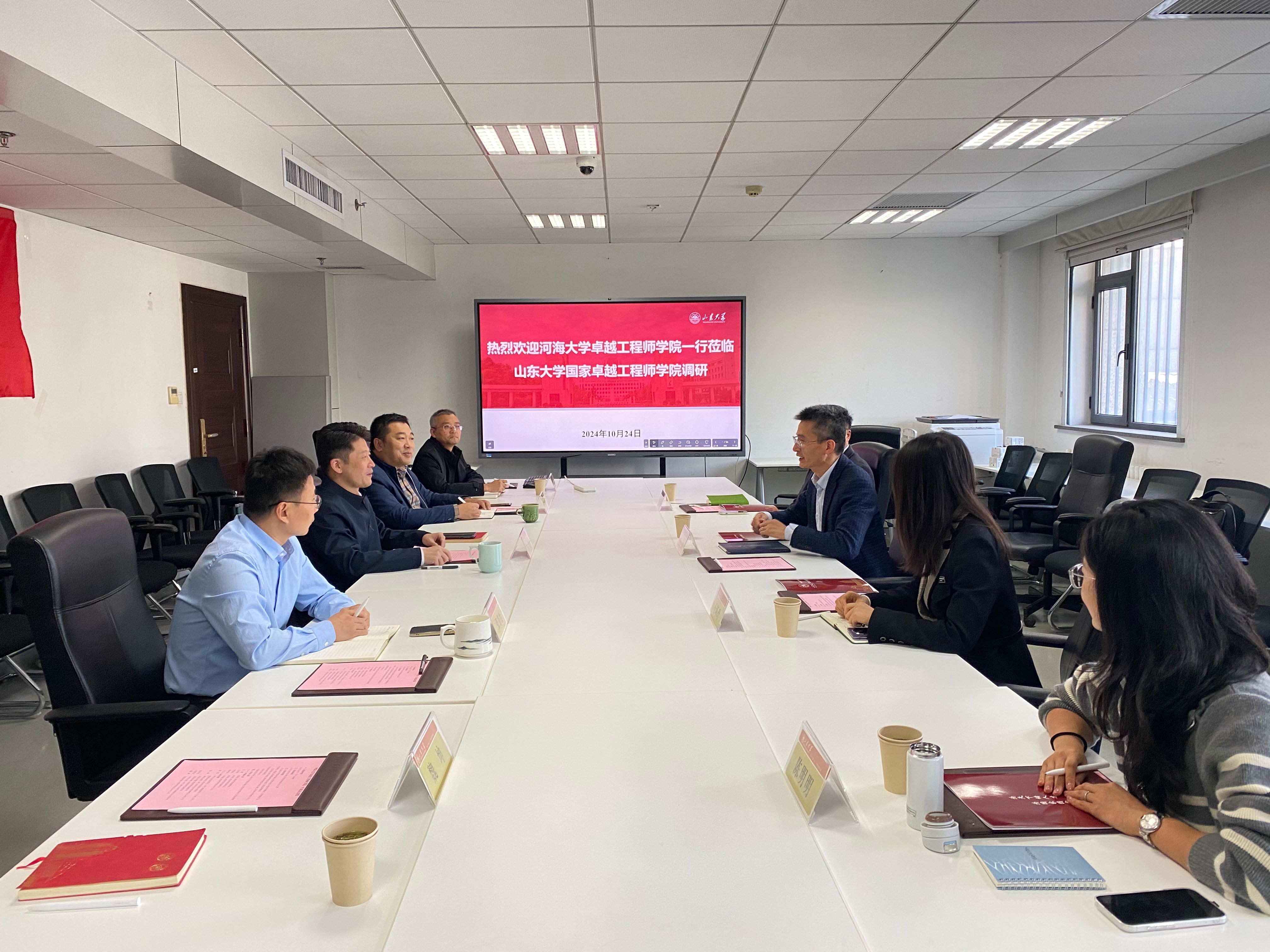 10月24日,河海大学卓越工程师学院副院长王建一行来校开展调研交流。太阳集团研究生院副院长、研工部副部长(主持工作)、tyc5997太阳集团执行院长韩勃主持座谈会。河海大学卓越工程师学院副院长王环玲、副院长华昊辰,太阳集团研究生院、研工部专业学位教育办公室主任、tyc5997太阳集团副院长郑彬,副院长张存生参加会议。
