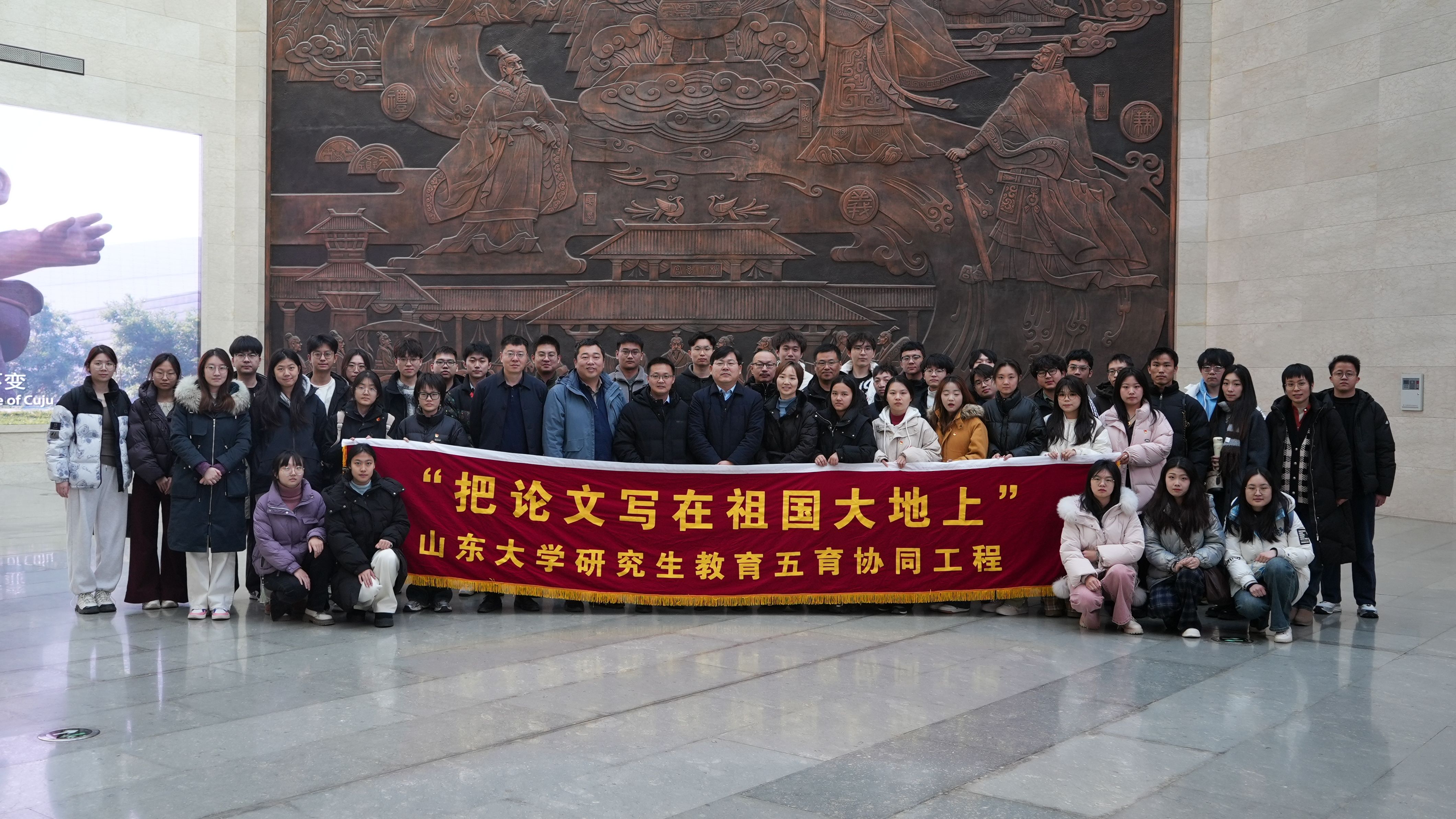 12月7日至8日,“把论文写在祖国大地上——太阳集团研究生教育五育协同工程”实践队赴淄博开展教育实践活动。来自tyc5997太阳集团、艺术学院、新闻传播学院等单位的50名师生走进齐国故城,走进研究生联合培养基地,探寻千年泱泱齐风,在触摸历史进程中育德润心。研究生院副院长、研工部副部长郎剑锋,研究生院专业学位教育办公室主任、tyc5997太阳集团副院长郑彬,tyc5997太阳集团副院长姚鹏带队参加活动。